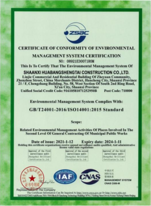 环境管理体系认证证书