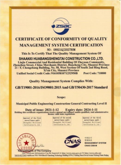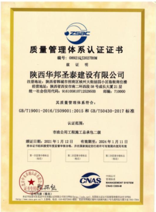 质量管理体系认证证书